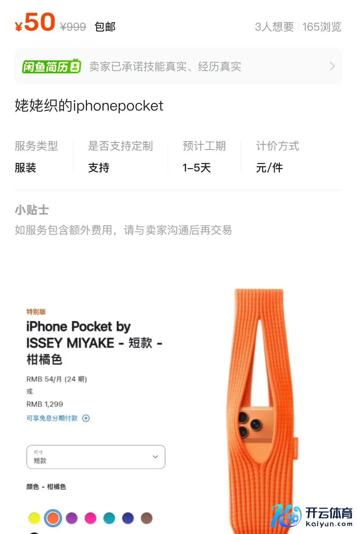得物App数据暴露,iPhone Pocket长款市集价高潮到2399元,短款价钱高潮到1699元,最高溢价500元。而另一边,该居品的平替款也在酬酢平台出现,30-60元就能买到一个,以致还有“姥姥织的”同款,标价50元。