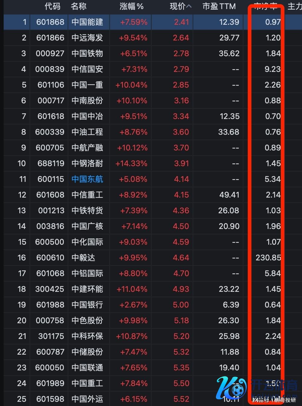 13. 中国能建(股价2.41元,市净率0.98倍):中国能建,这个在动力建树限制内的巨东谈主,它的名堂如褪色座座高耸的山岭,屹立在故国的地面上。