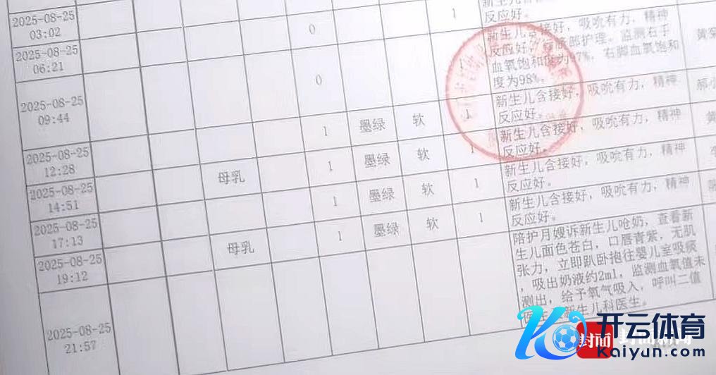 病院的重生儿护士记录单中,详实记录了两天内孩子的生理办法。其中,孩子8月24日12:30出身时躯壳办法泛泛,之后的奶粉喂养、母乳喂养均泛泛;8月25日21:57分,陪护月嫂诉重生儿呛奶,巡视发现其面色煞白,口唇青紫,无肌张力,立即趴卧抱住婴儿吸痰,吸出奶液约2ML,检测血氧值未测出,予以氧气吸入,呼唤二值班大夫及重生儿科大夫。