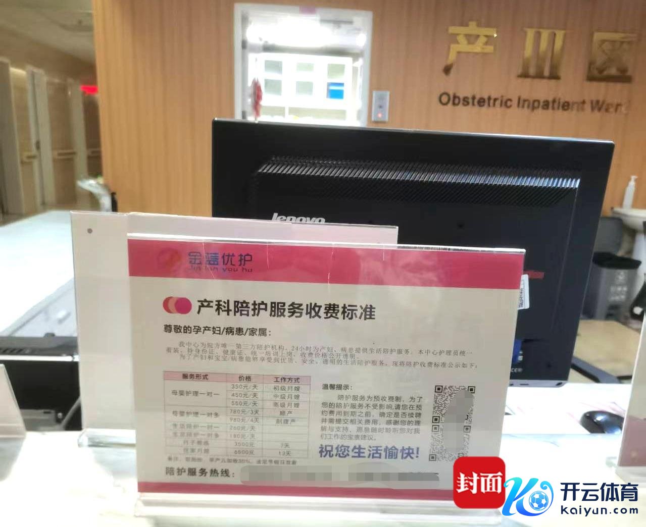 刘先生称,病院导医台上摆放着“金蓝优护”公司的作事收费门径。像片流露,该公司声称是病院的惟一第三方陪护机构,作事东说念主员执身份证、健康证,调解培训上岗。按照月嫂品级、陪护现实,收费不同,郭姓月嫂的收费门径流露她是中级月嫂。