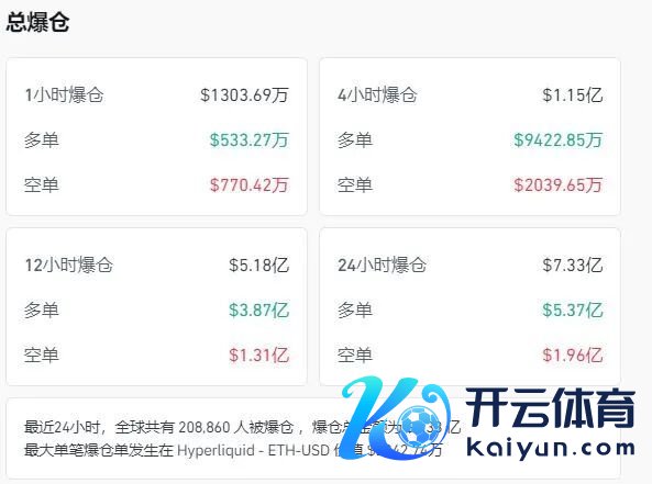 coinglass数据袒露,最近24小时,加密币全网共有208860东谈主爆仓,爆仓总金额为7.33亿好意思元(约合东谈主民币52亿元)。