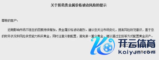 其中,工商银行时隔5天两度发布风险教导,15日补充谈,冷漠投资者散布确立,幸免单一重仓黄金,通过定投等神气确立黄金钞票。